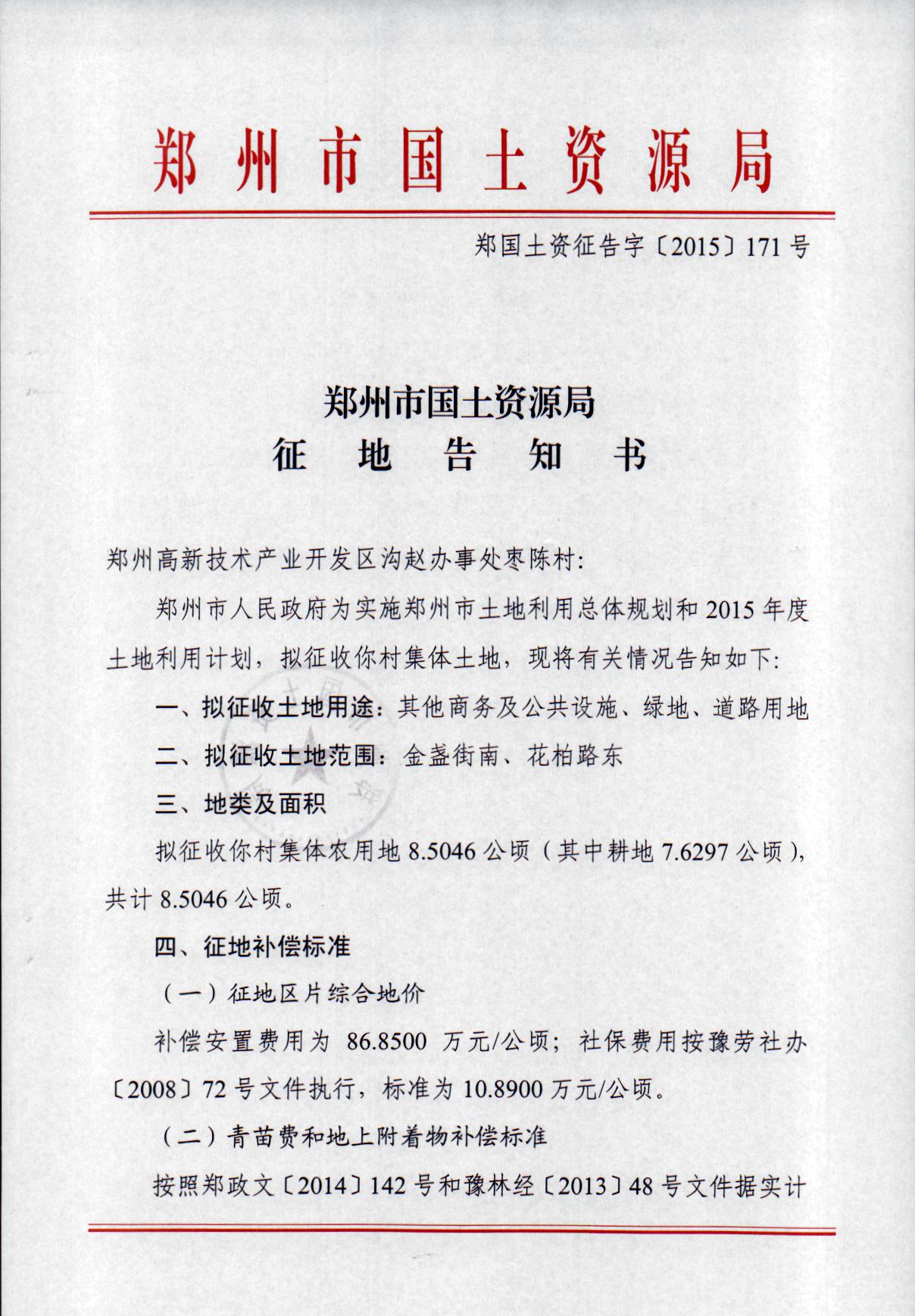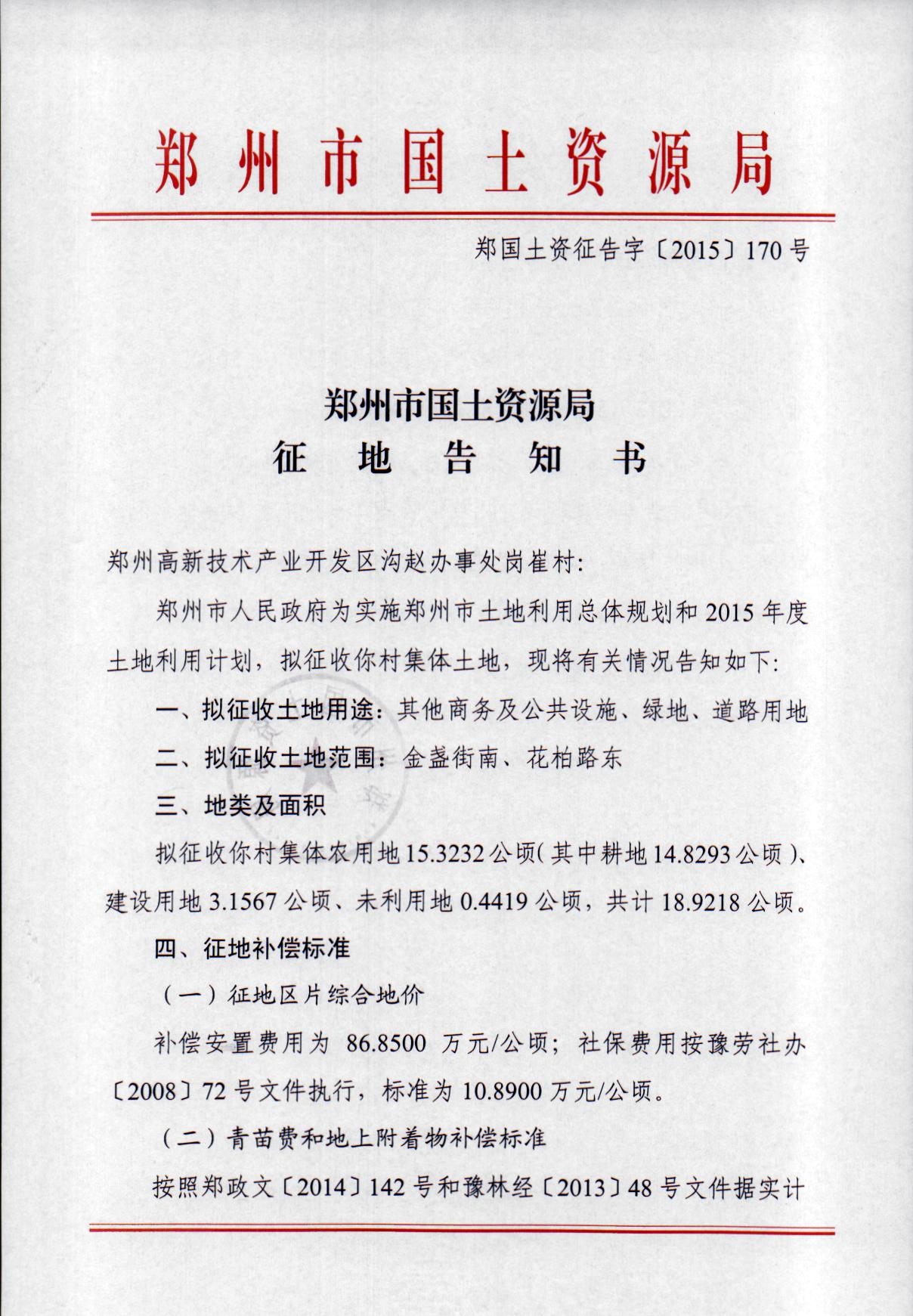 2015年乡镇第二十批实施征地告知书(岗崔村、枣陈村、朱砦村)