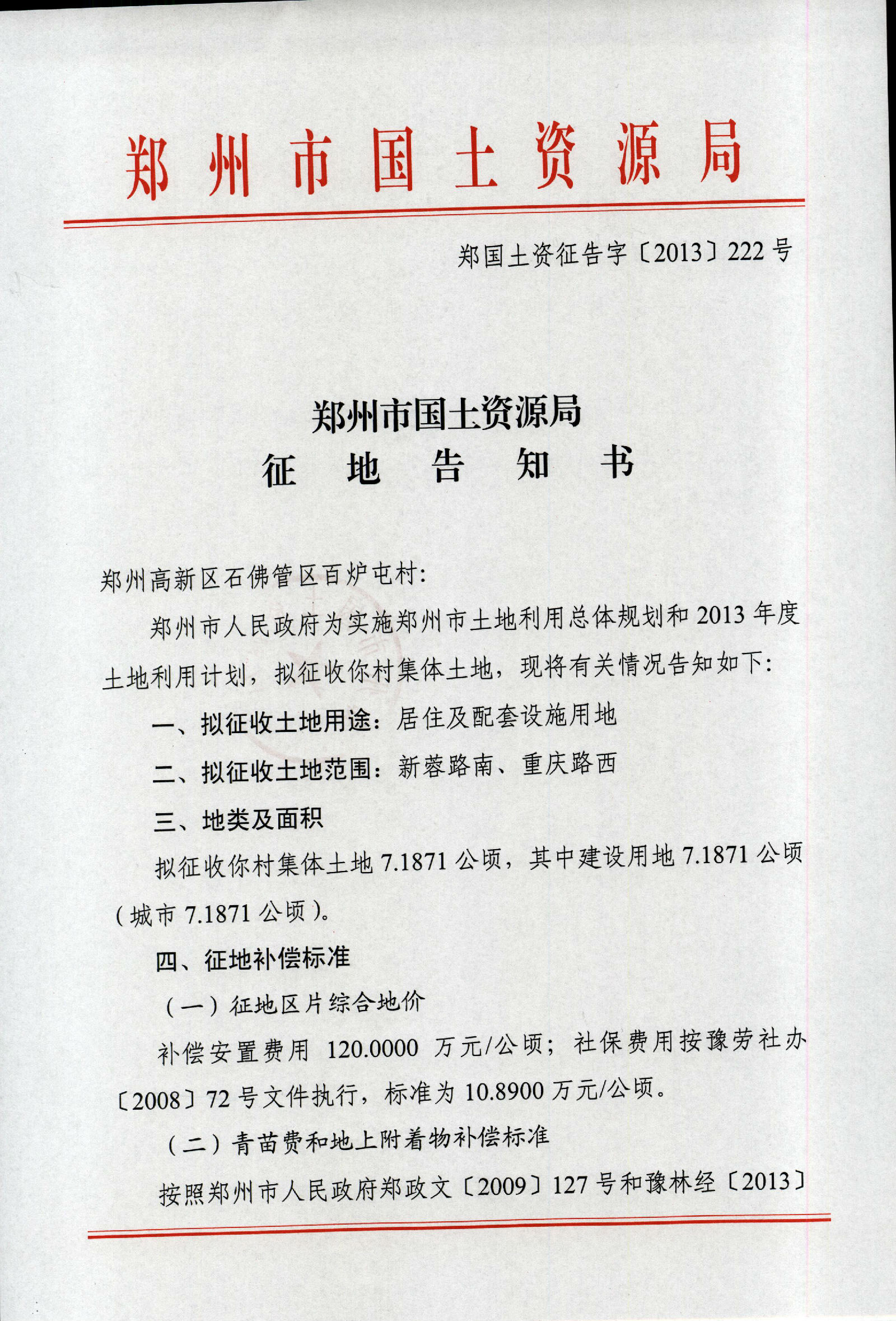 2013年乡镇第二十五批实施征地告知书(百炉屯村、岗崔村、堂李村、东连河村、沟赵办事处村、朱砦村、水牛张村、祥营村)