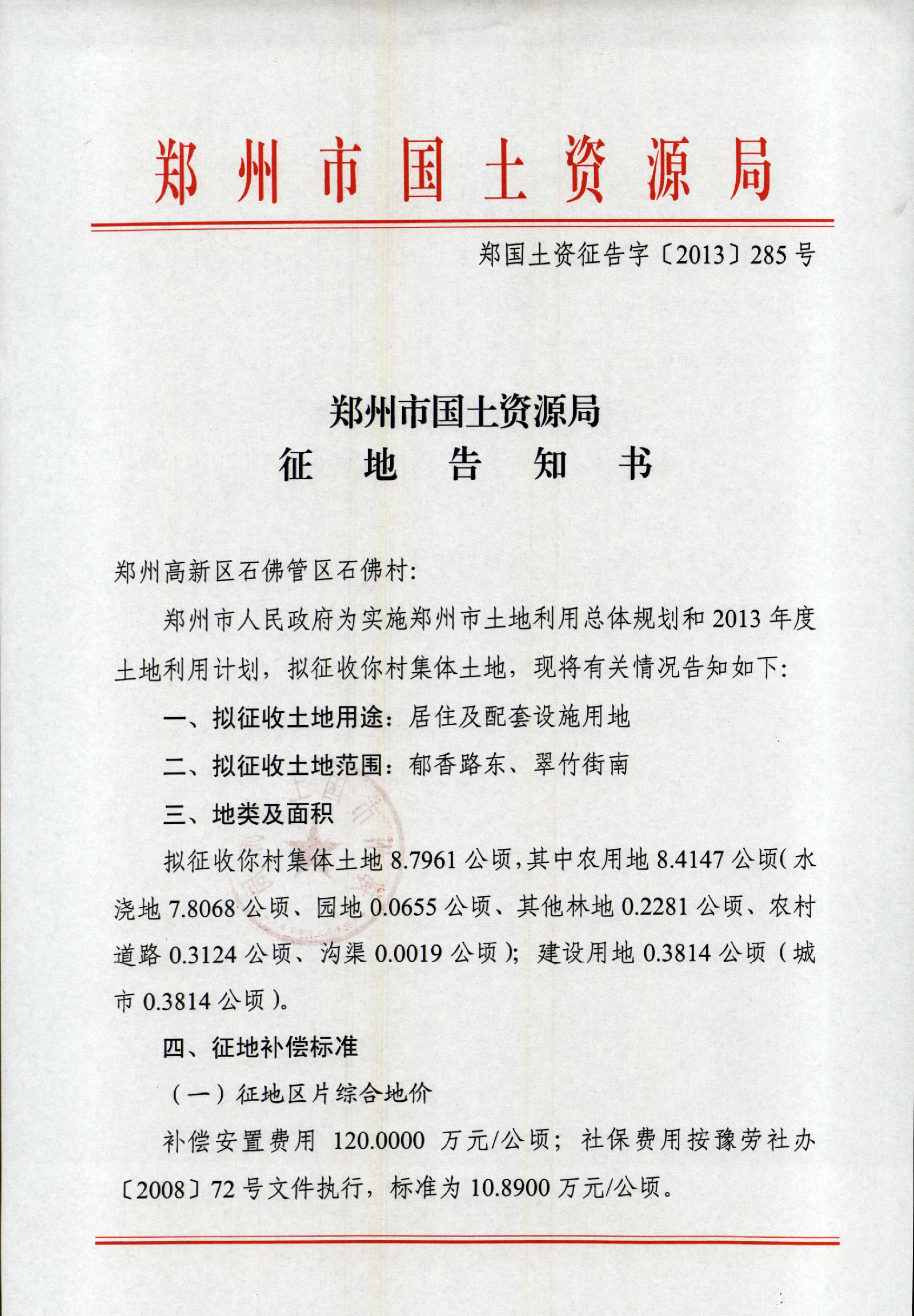 2013年乡镇第二十六批实施征地告知书(石佛村、堂李村、崔岗村、朱砦村、庄王村)