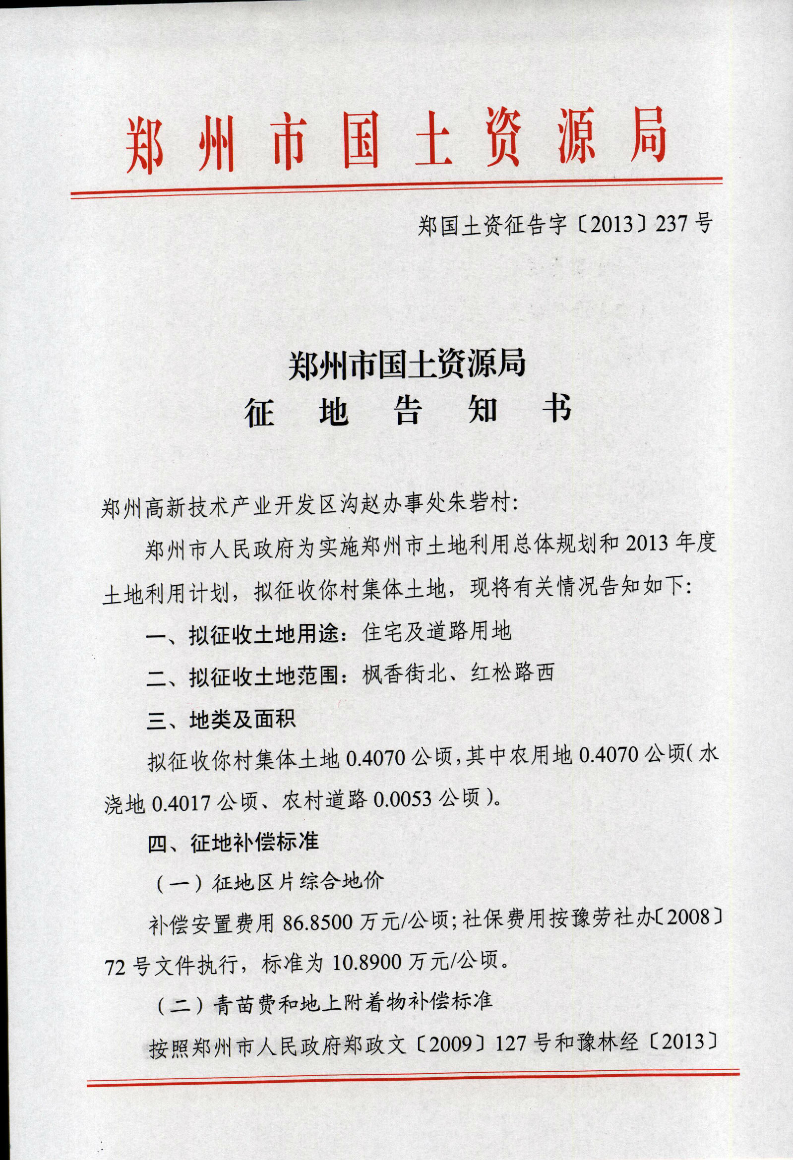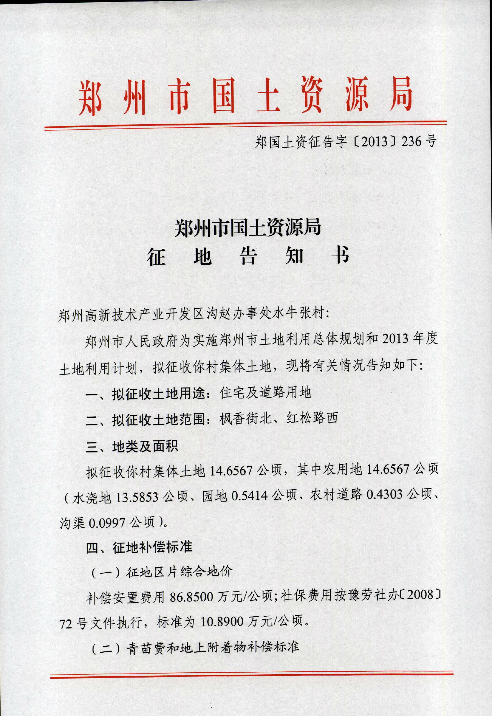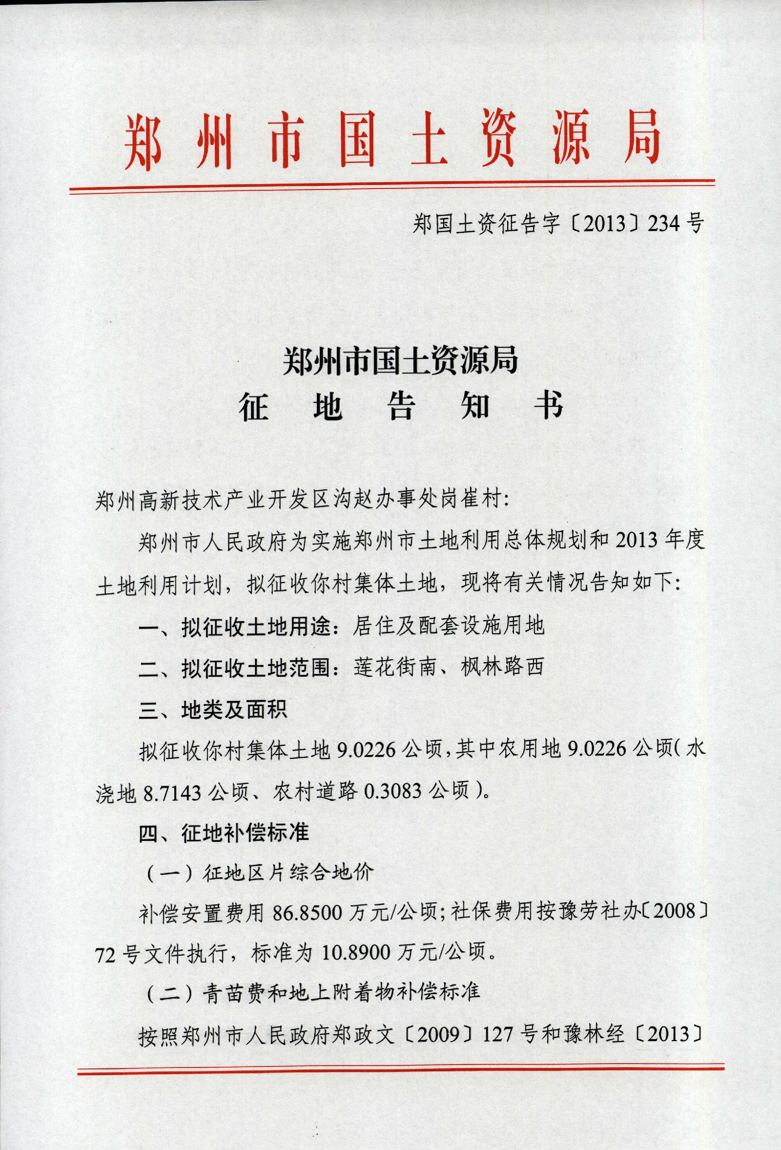 2013年乡镇第二十七批实施征地告知书(岗崔村、牛砦村、水牛张村、朱砦村、庄王村)
