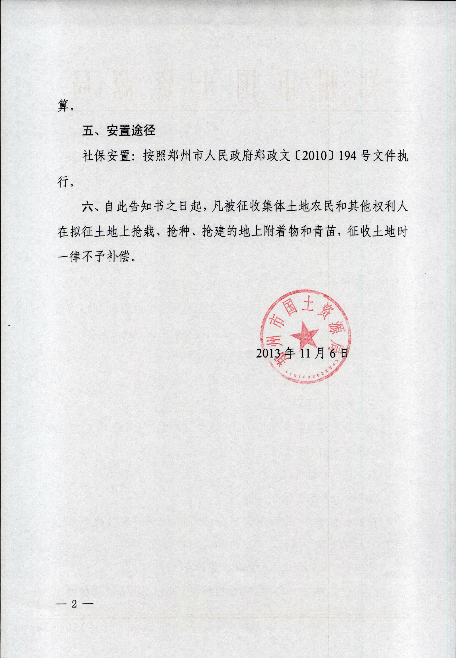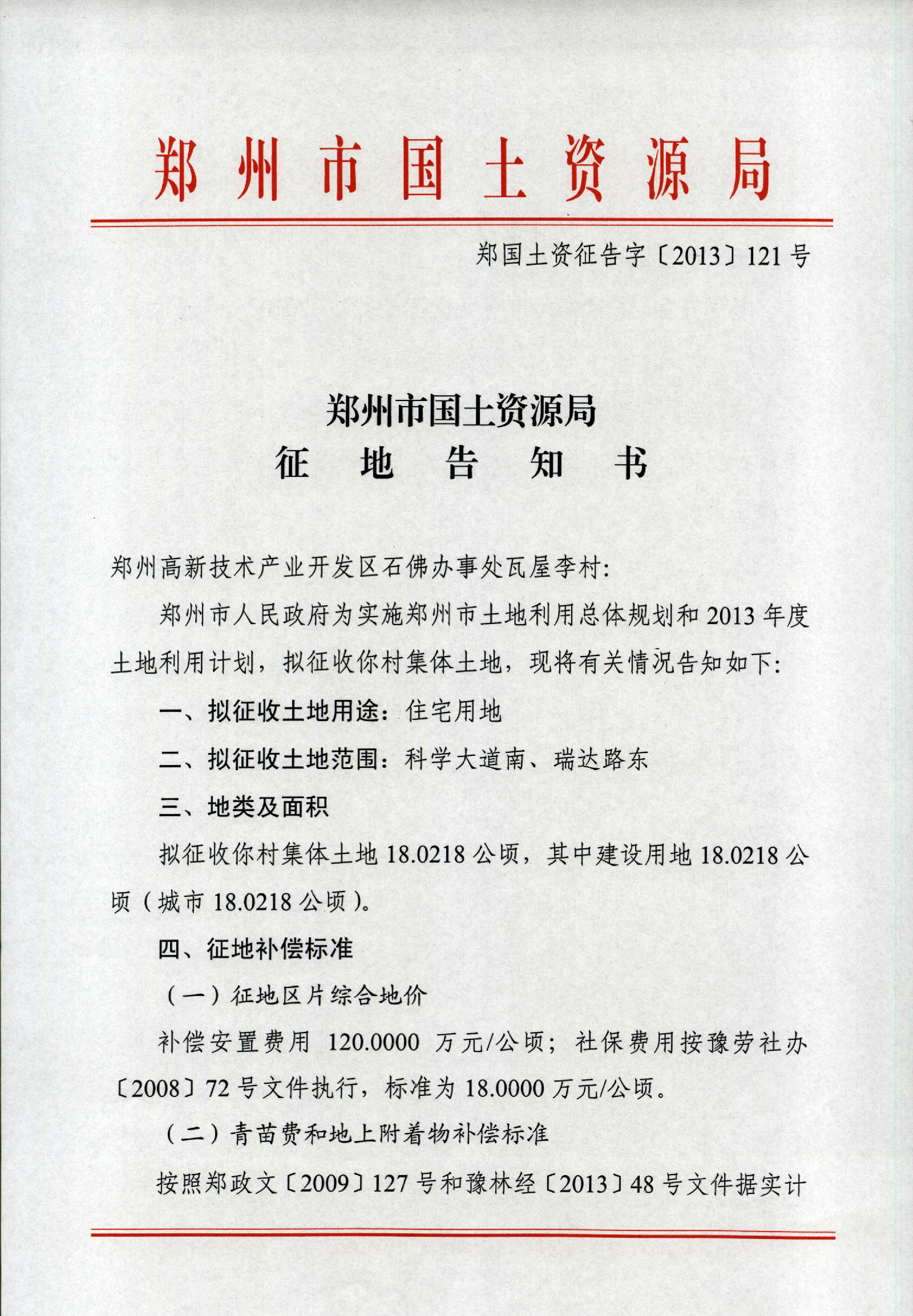 2013年城市第三批瓦屋里村征地告知书