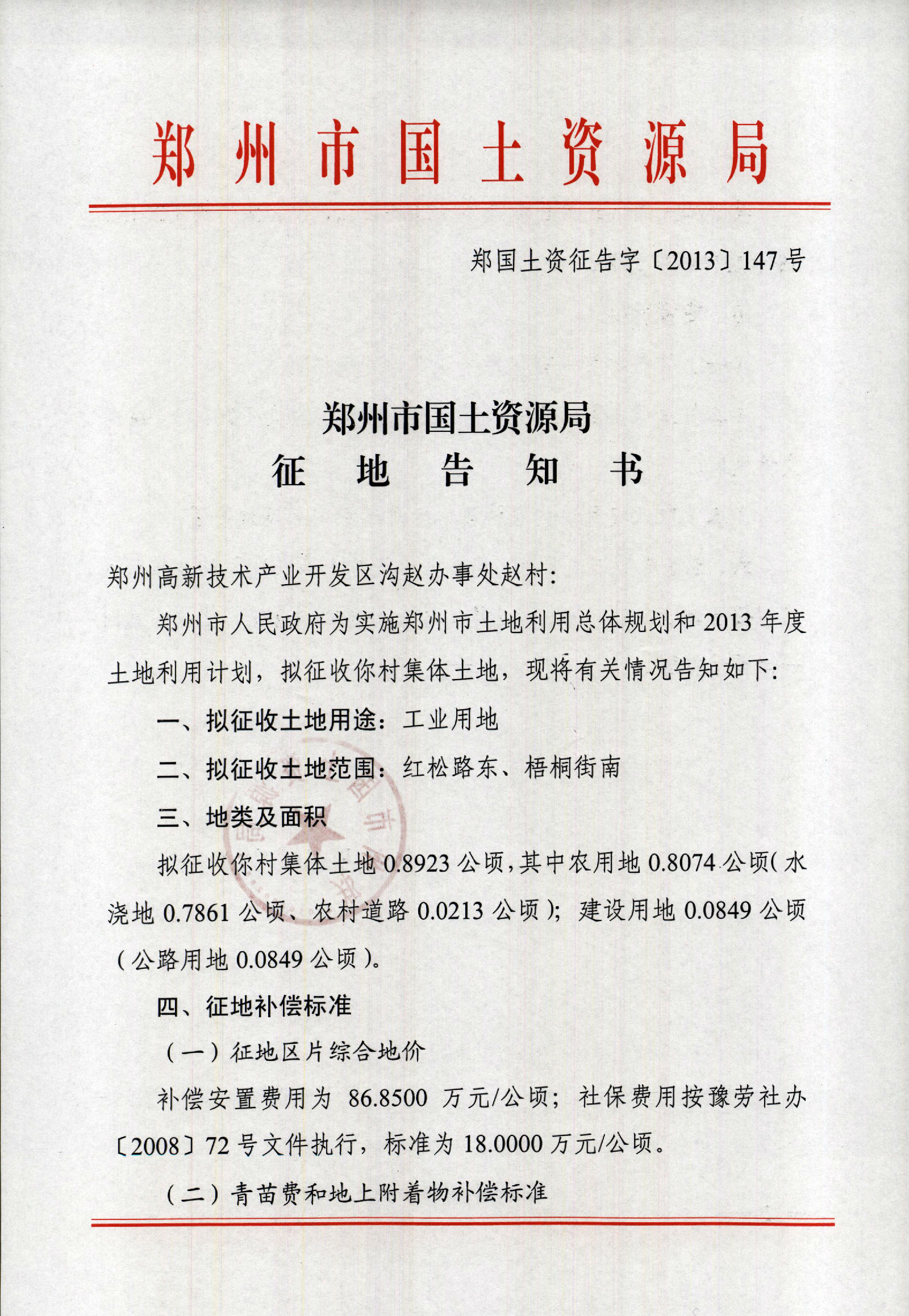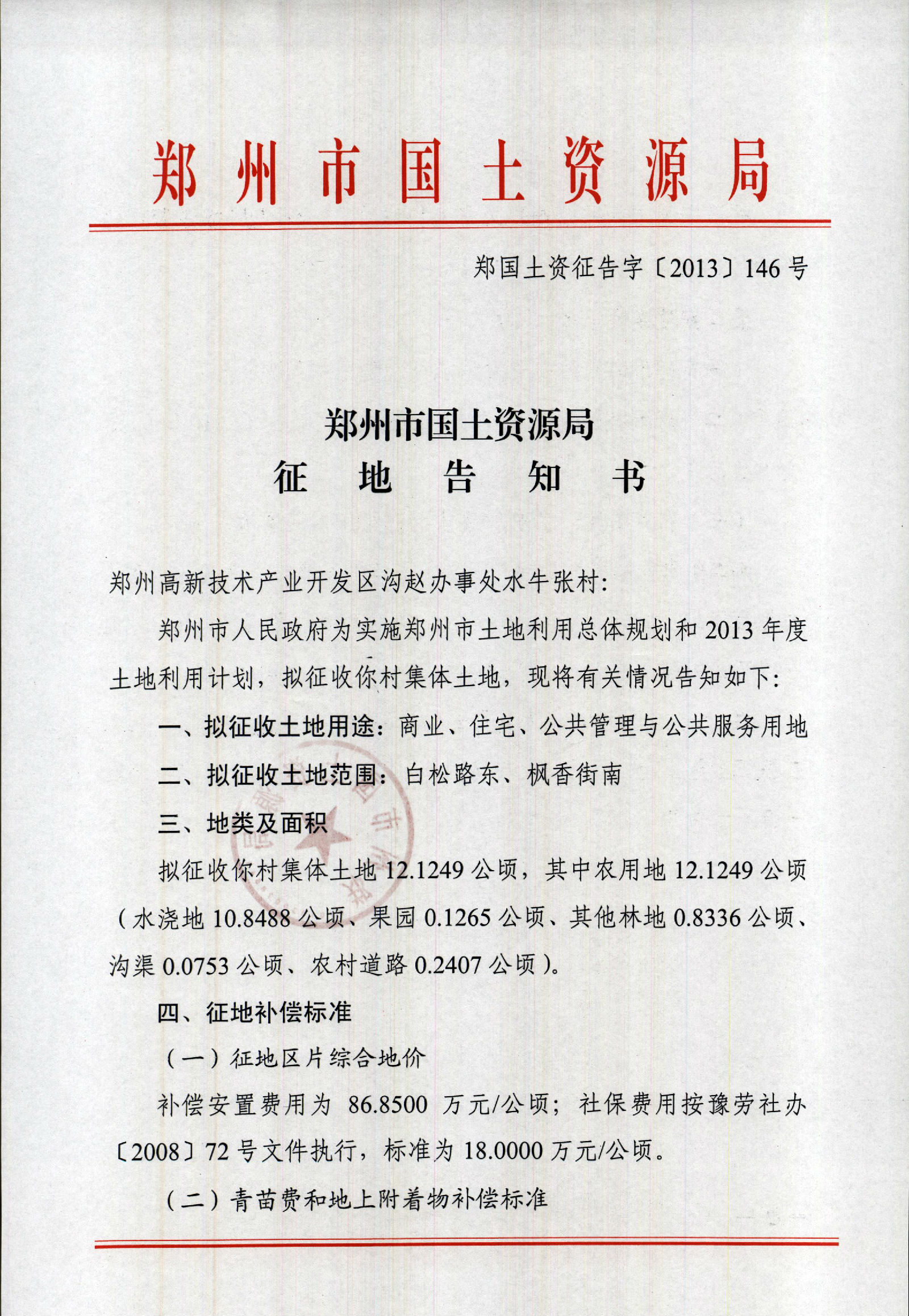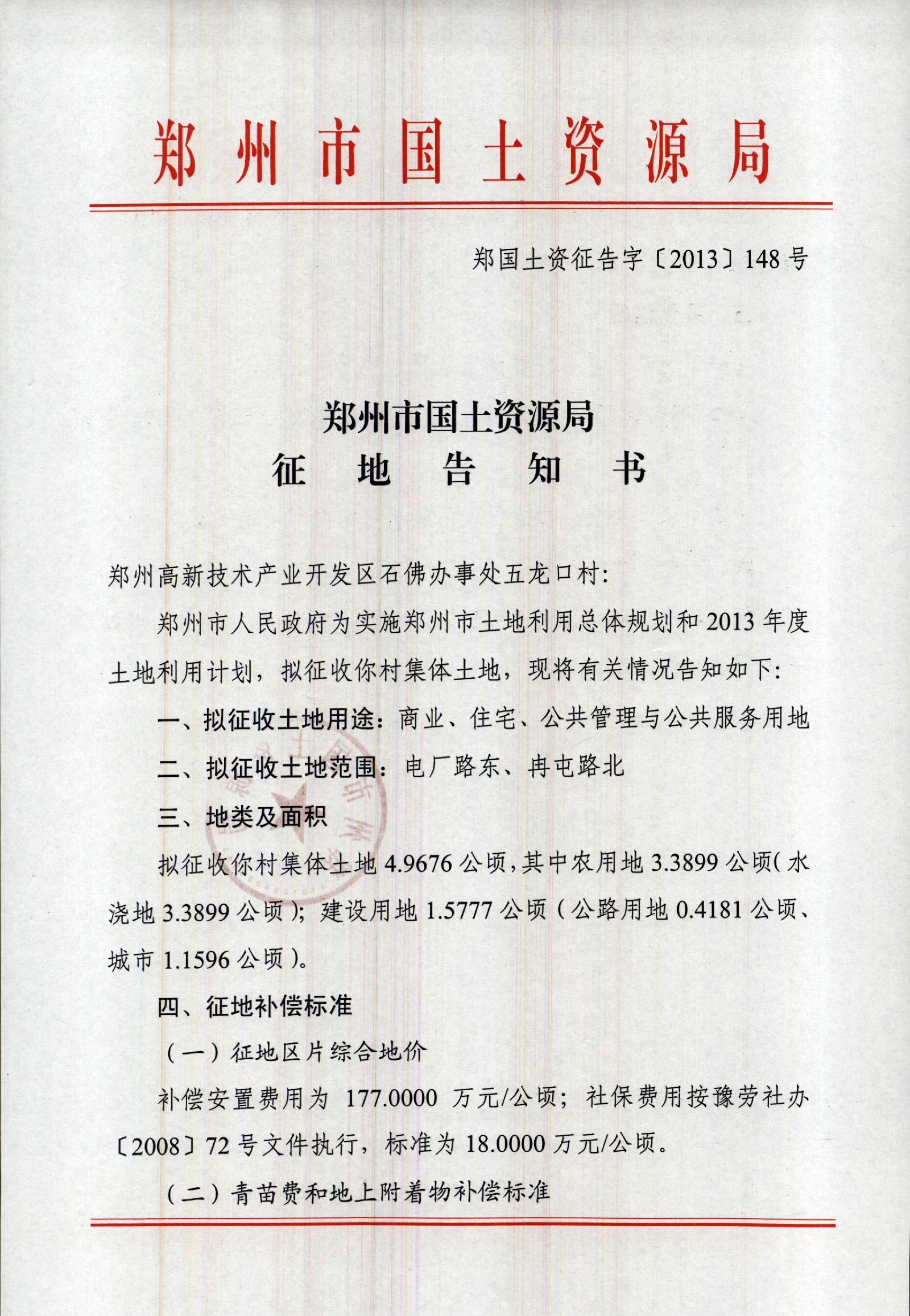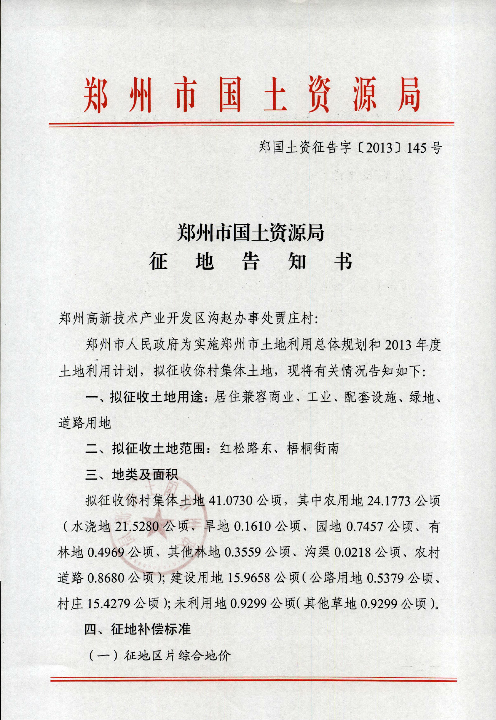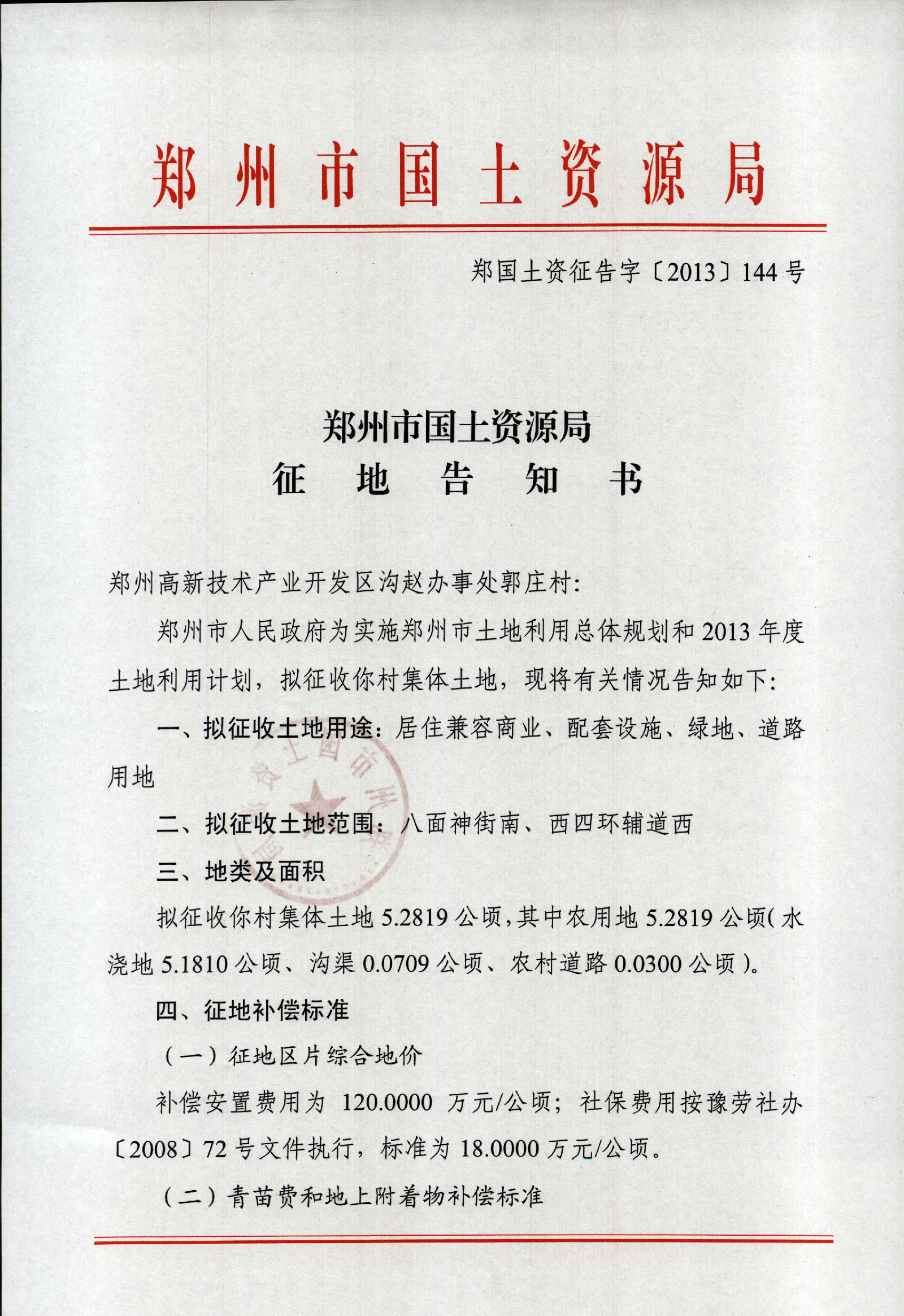 2013年城市第一批实施征地告知书(郭庄村、贾庄村、水牛张村、五龙口村、赵村)