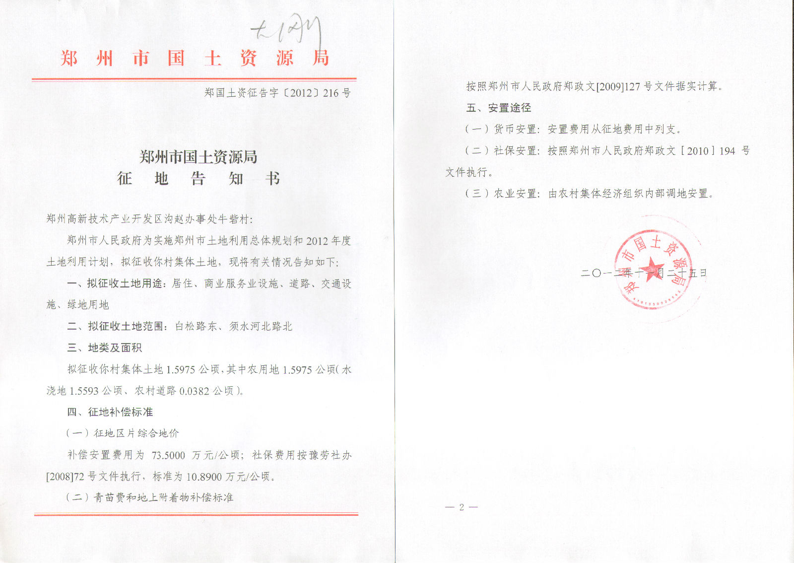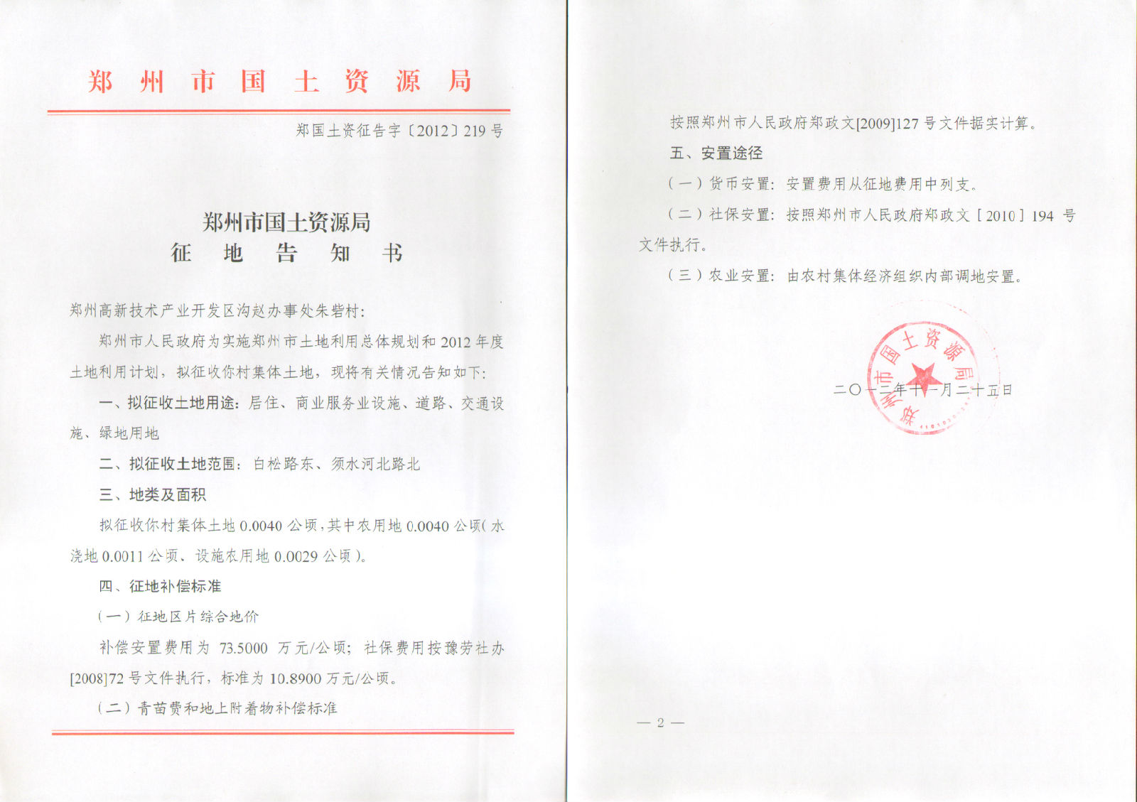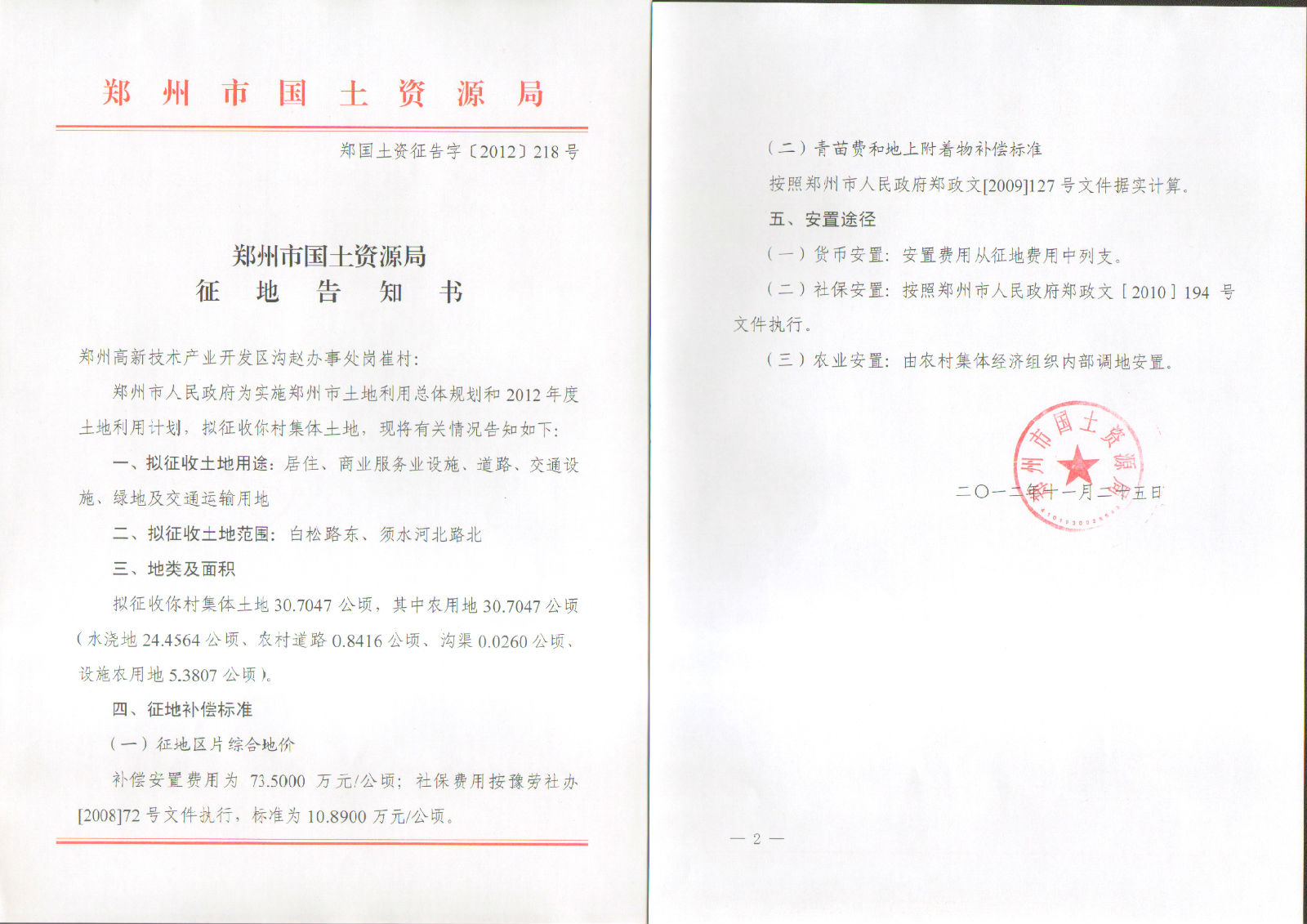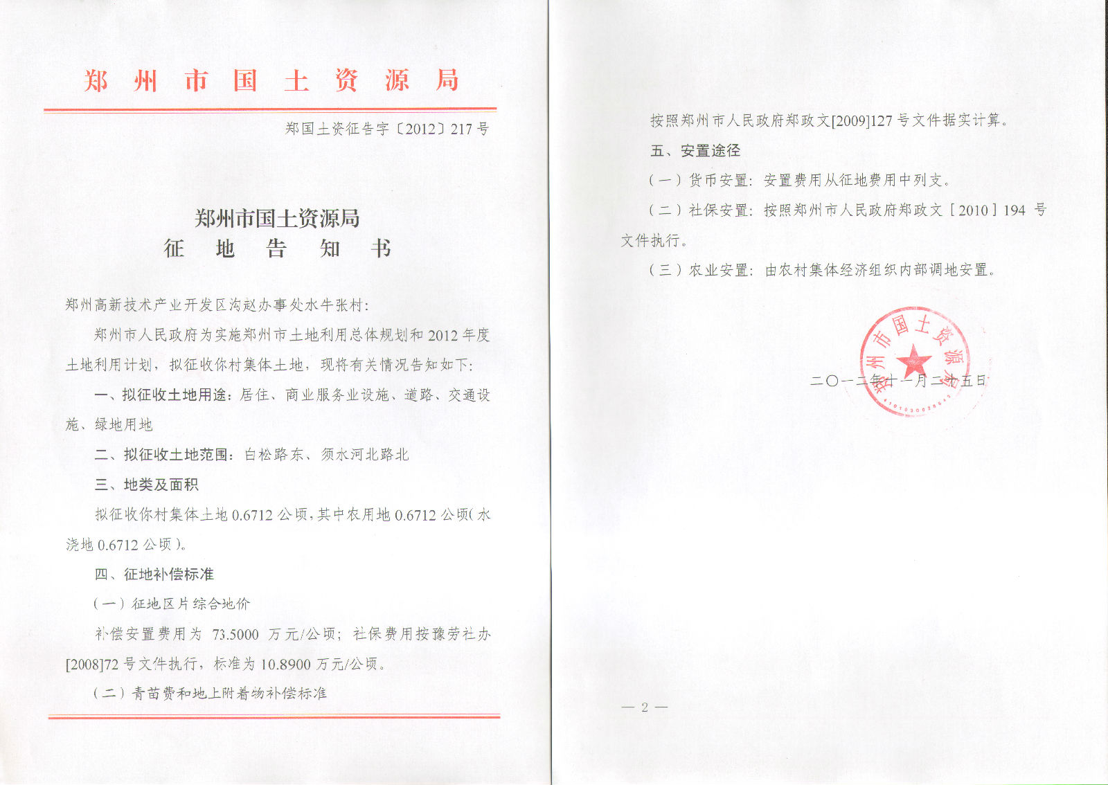 2012年乡镇第二十三批实施征地告知书(岗崔村、牛砦村、水牛张村、朱砦村)