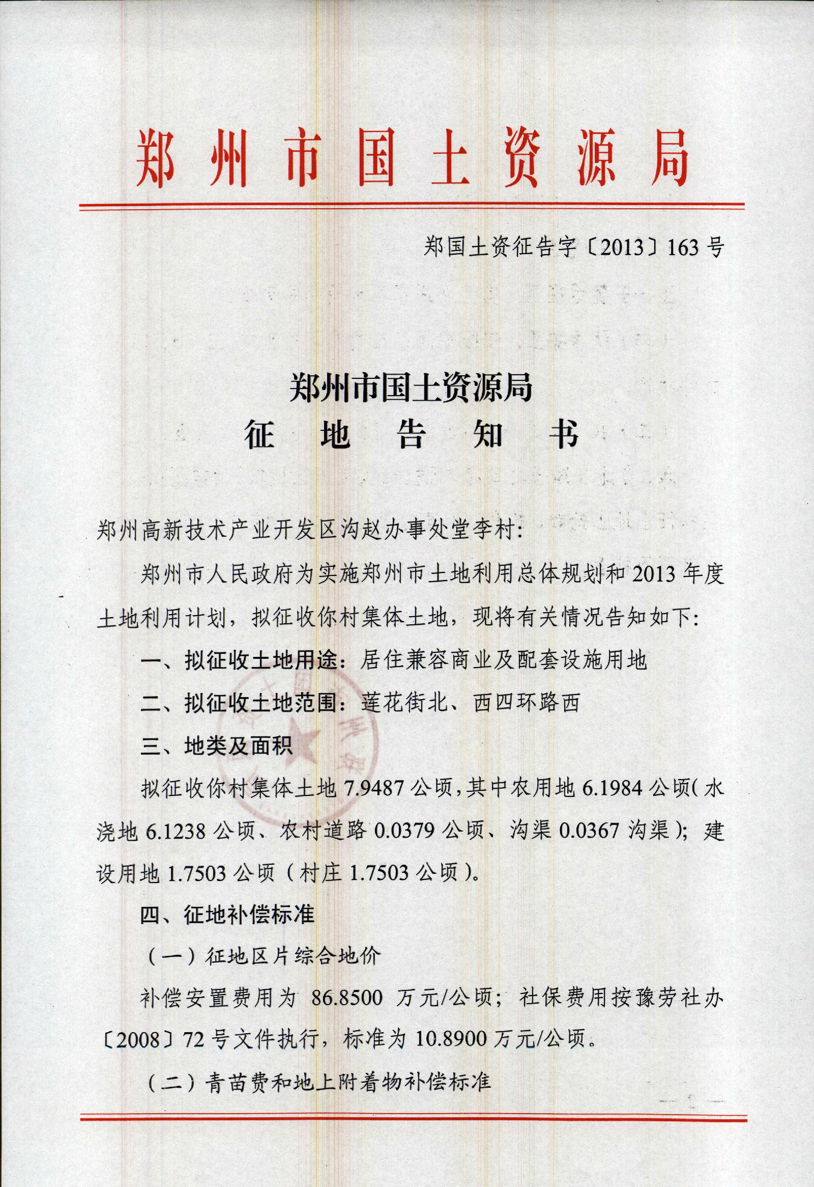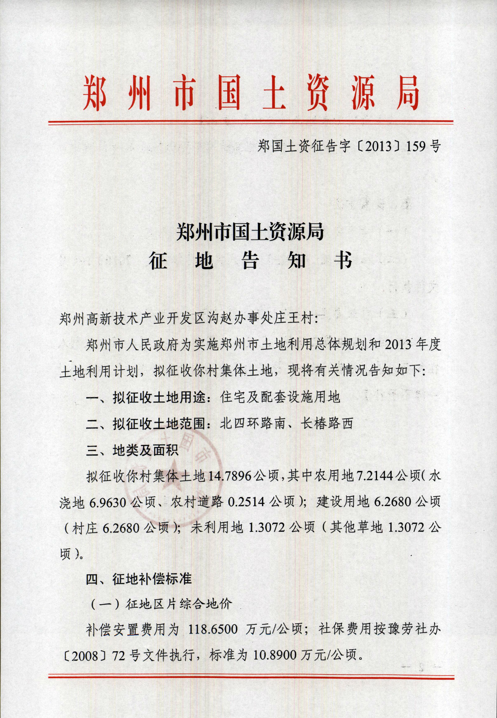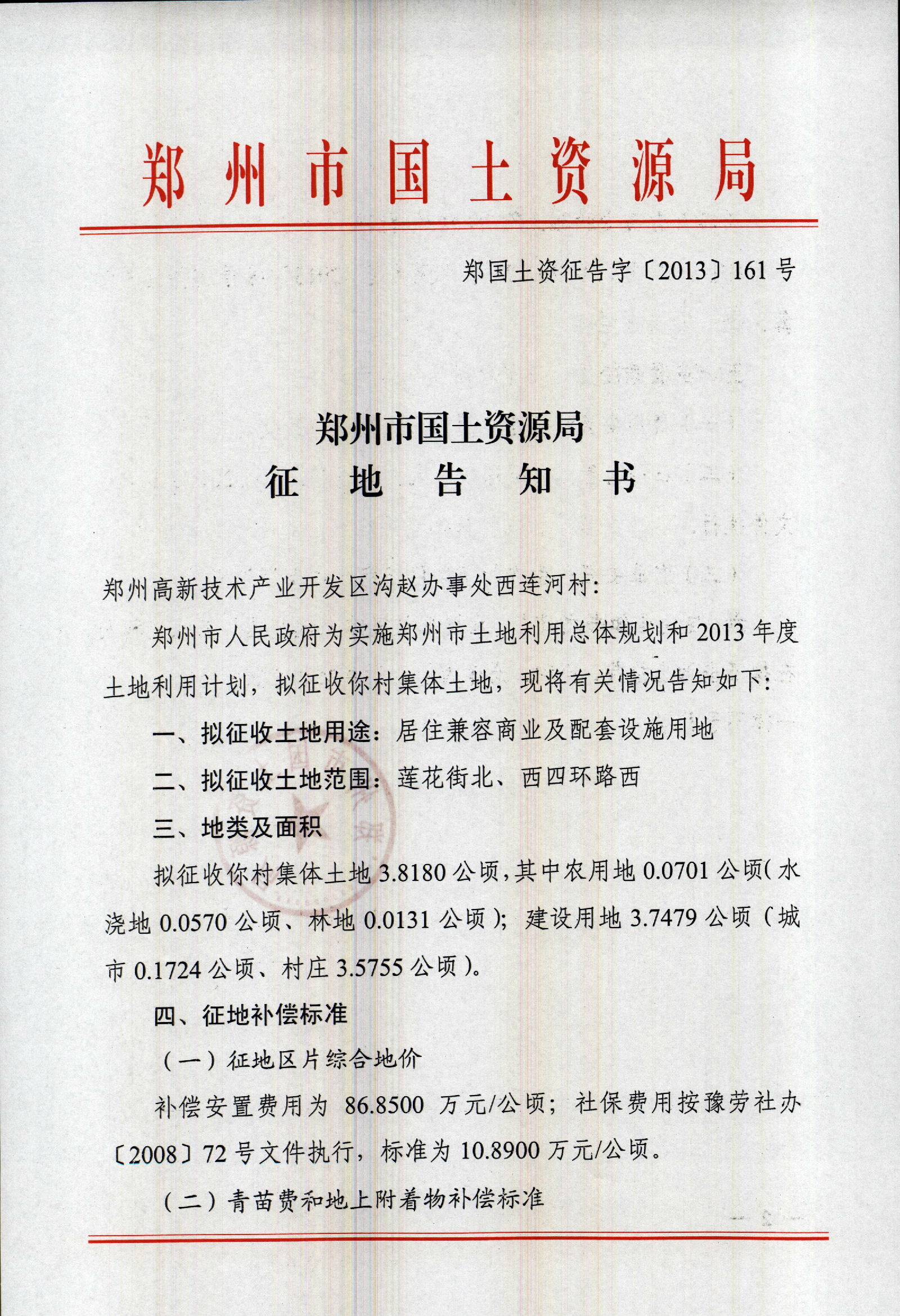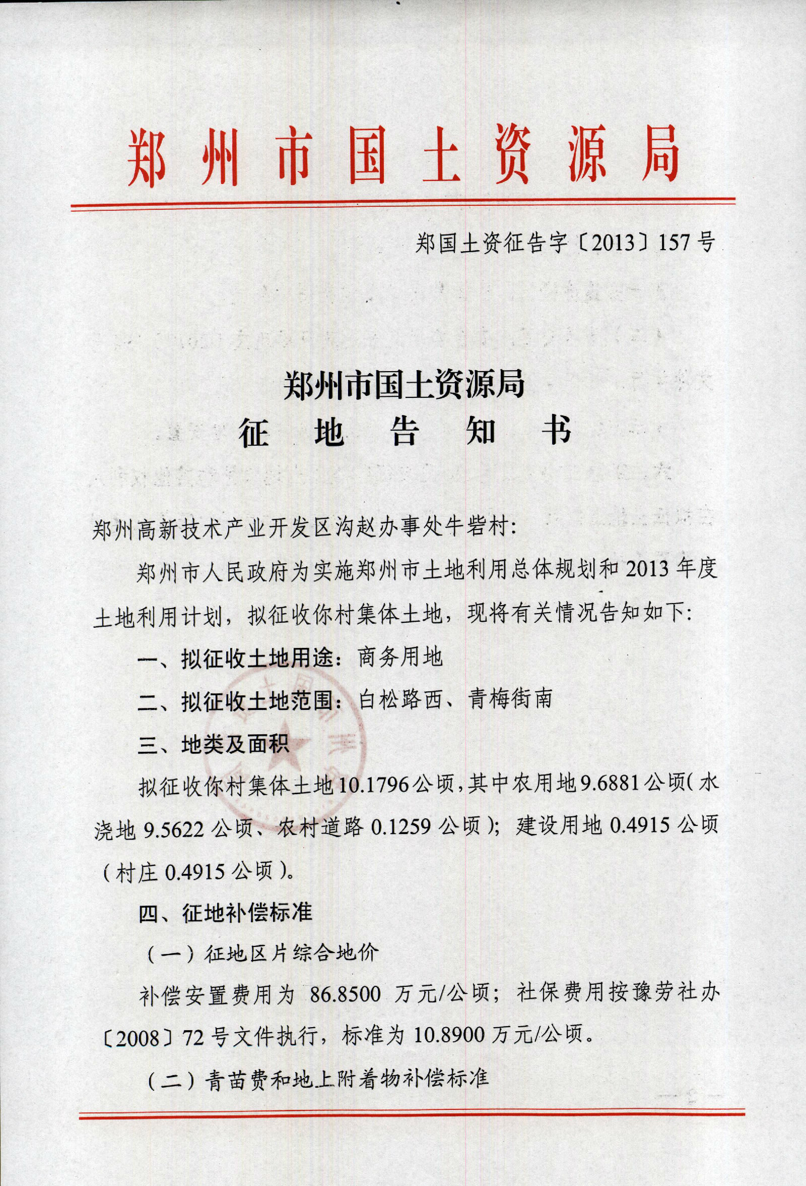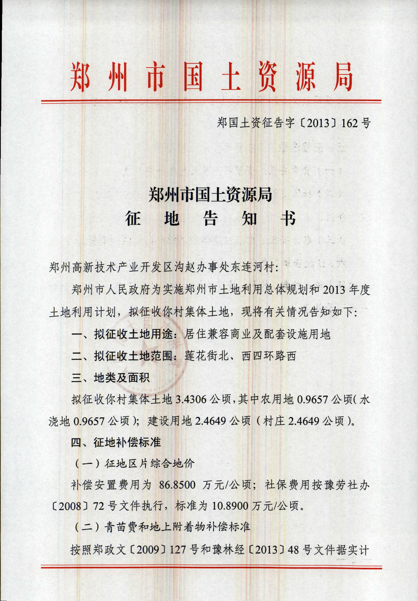 2013年乡镇第十三批实施征地告知书(岗崔村、牛砦村、郭村村、庄王村、沟赵办事处、西连河村、东连河村、堂李村)