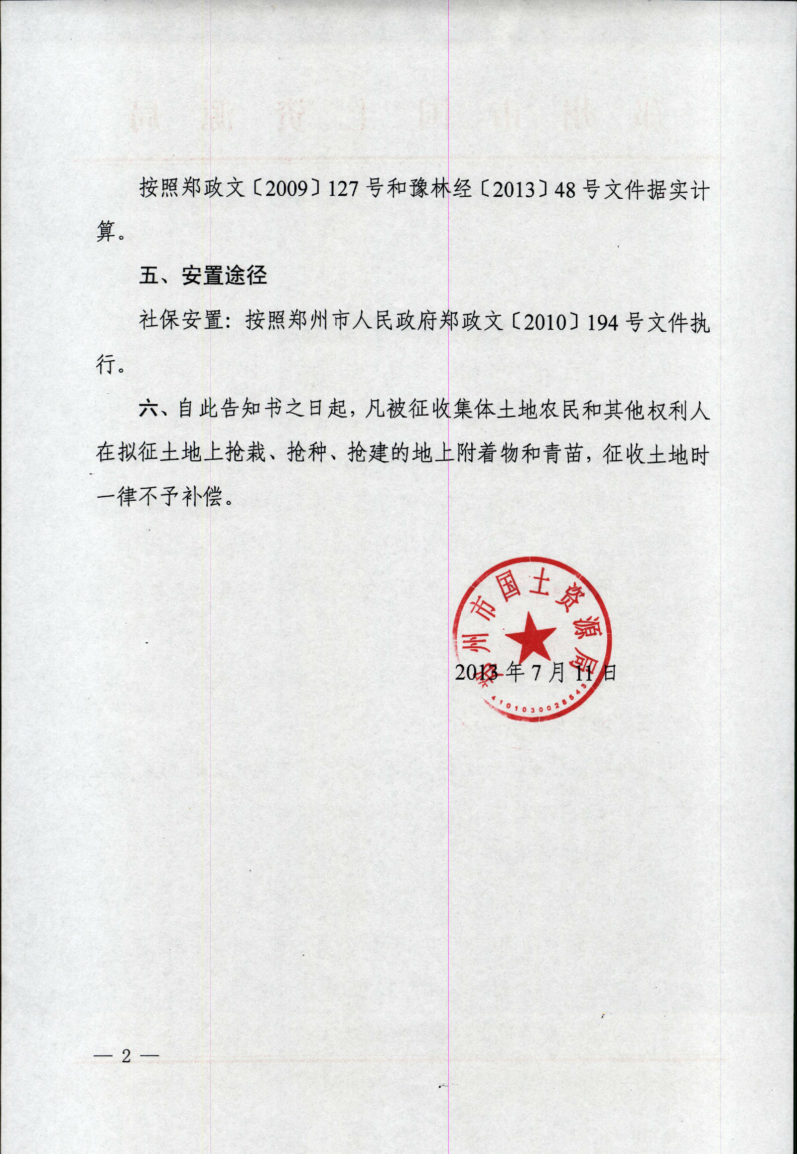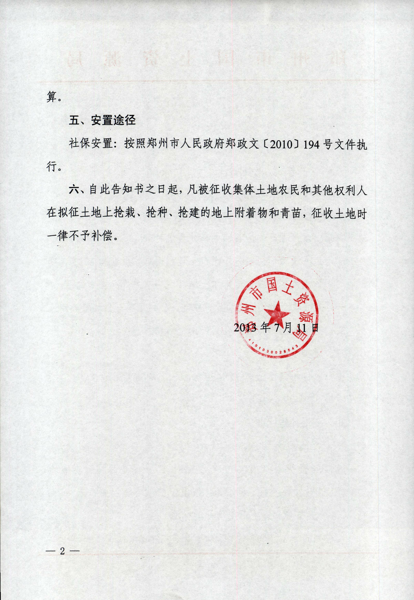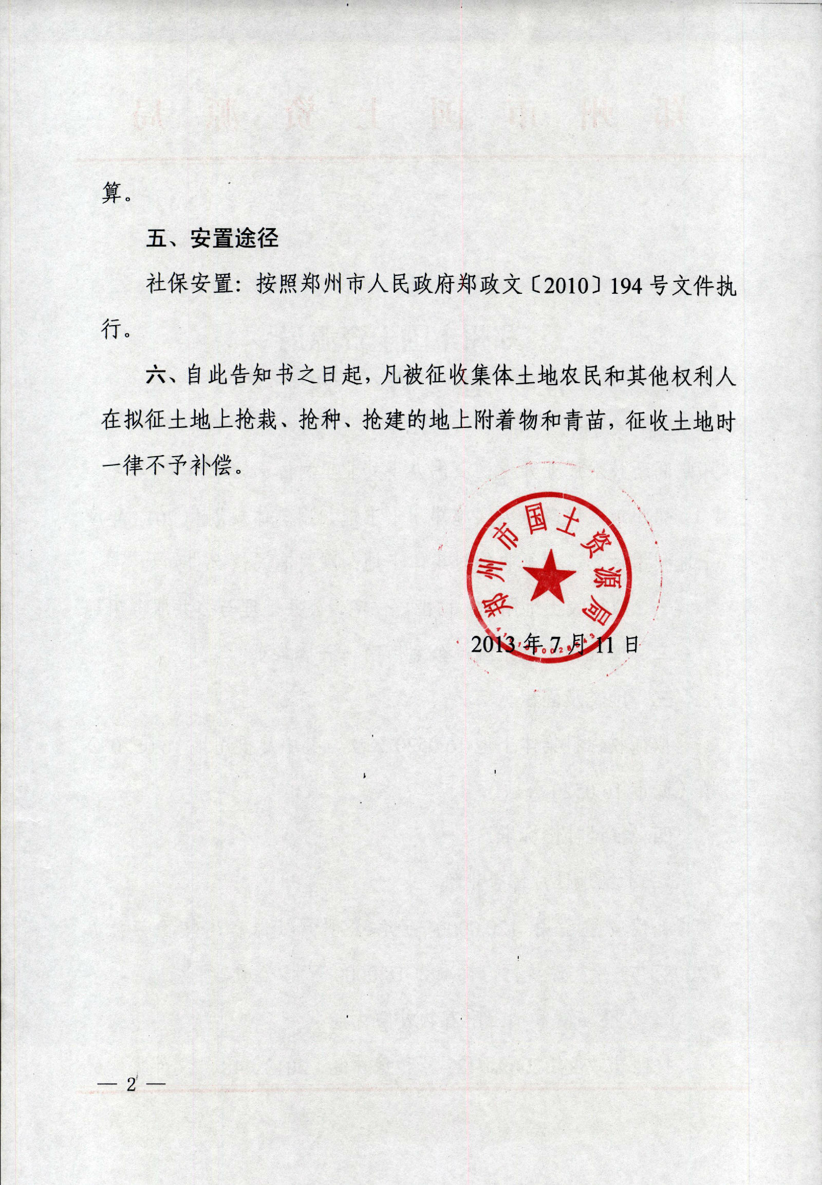 2013年城市第一批实施征地告知书(北里村、大里村、五龙口村)